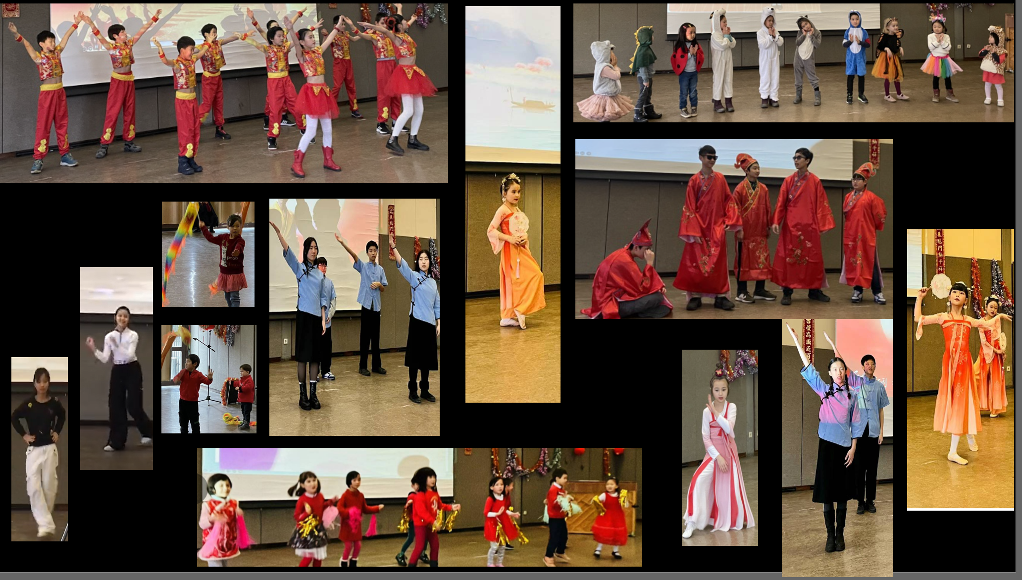 联欢活动的主体当然是文艺表演,各中文班大小学员们是当之无愧的主力。几位小主持人导引、串场,或字正腔圆,或精灵古怪,纷纷各显神通。开场节目《甩龙舞》由书虫班担当。他们以学龄前儿童为主,但站到C位也毫不怯场,个个手持彩纸小龙,左右舞动,满台风生,甚是灵动喜人。